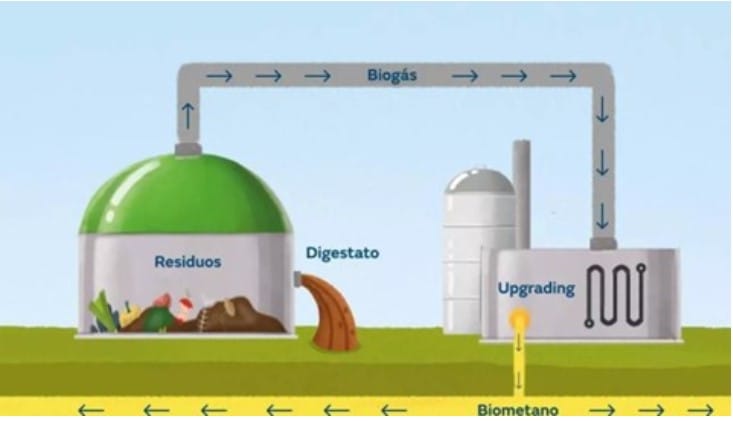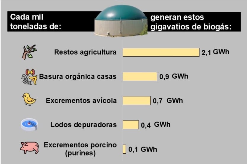 Todo muy verde y circular: a partir de 15,7 millones de toneladas anuales de materia orgánica valorizable, implantando entre 80 y 100 plantas de biometanización, el Plan establece un objetivo de producción mínima de biometano de 2,8 teravatios hora anuales (TWh/año) para 2030 con un potencial de 8,1 TWh/año (Las plantas en tramitación ya superan el objetivo de potencia marcado para el 2030). Se conseguiría producir tanta energía como todo el gas natural fósil que se consume en España (lo que se interpreta como ahorro de emisiones de Gases de Efecto Invernadero de 509.600 toneladas de CO2). Estos datos de descarbonización del Plan no son reales ya que excluyen la huella de carbono de los residuos fruto de los procesos que los han generado, como por ejemplo la ganadería industrial. Si se contempla todo el proceso de producción de carne, las cifras de reducción que se obtiene con la biometanización son ridículas.