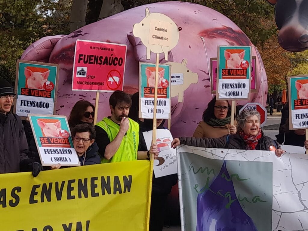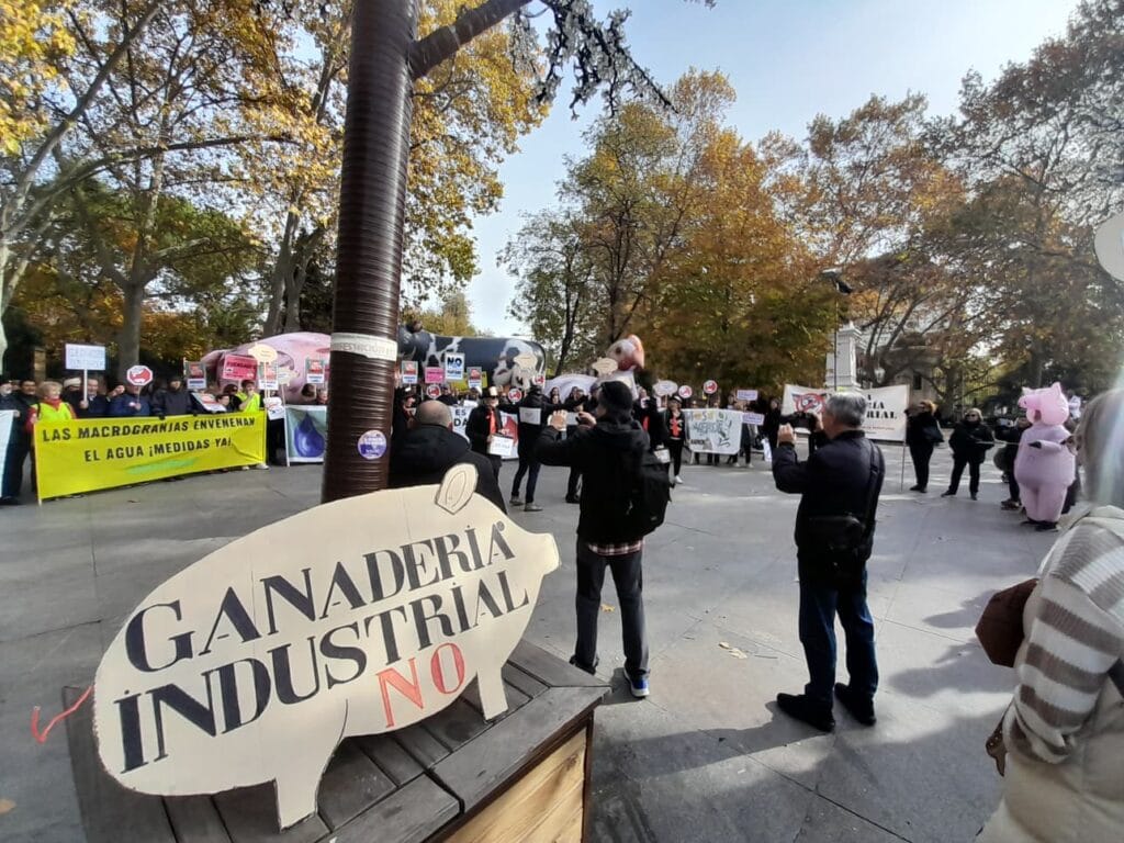 En España, las plataformas y organizaciones constituyentes de la coordinadora decidieron aportar a la semana europea un acto el sábado 29 de Noviembre consistente en una Concentración–performance contra la ganadería industrial ,que se efectuó en Madrid en la Cuesta Moyano. Dicha performance se hizo con el acertado título “ La subasta de nuestros pueblos”