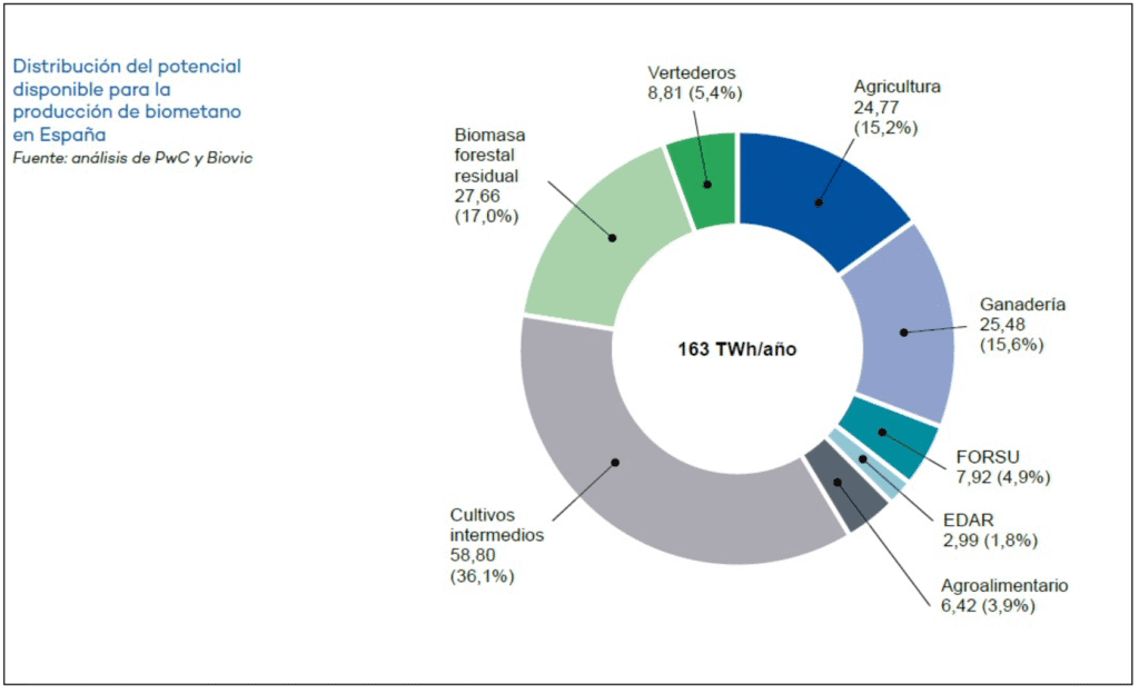 Potencial disponible para la producción de biometano en España. Fuente: Energiasrenovables.com
