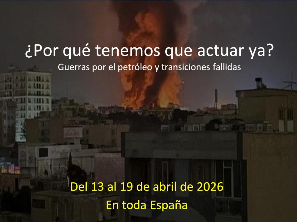 Se trata en principio de unas cincuenta y pico charlas efectuadas en las principales ciudades de España y a cargo de científicos y activistas, desde Antonio Turiel, Carlos Taibo, Fernando Valladares, Yayo Herreros y otras muchas personas menos conocidas pero igualmente válidas. Las fechas establecidas son entre el 13 y el 19 de Abril.